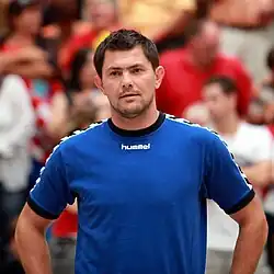 Denis Špoljarić (born 20 August 1979) is a Croatian former handball player who currently works as an assistant coach of RK Zagreb. He was a World champion in 2003 with the Croatian national team,[1] and Olympic champion in 2004.[2] He received a silver medal at the 2005 World Championship and a silver medal at the 2008 European Championship.
