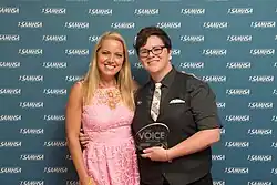 Food Network host Melissa d'Arabian (left) stands with 2015 SAMHSA Voice Award winner, Dese'Rae L. Stage (right).