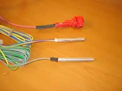 In 1832, a hot wire detonator was produced by American chemist Robert Hare, although attempts along similar lines had earlier been attempted by the Italians Volta and Cavallo.[7] Hare constructed his blasting cap by passing a multistrand wire through a charge of gunpowder inside a tin tube; he had cut all but one fine strand of the multistrand wire so that the fine strand would serve as the hot bridgewire. When a strong current from a large battery (which he called a "deflagrator" or "calorimotor") was passed through the fine strand, it became incandescent and ignited the charge of gunpowder.[8][9]