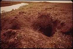 An Arctic ground squirrel burrow that has been excavated by a hunting barren-ground grizzly bear