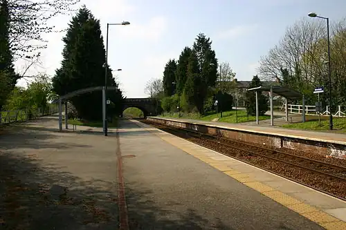Dinsdale is a railway station on the Tees Valley Line, which runs between Bishop Auckland and Saltburn via Darlington. The station, situated 3 miles 65 chains (6.1 km) east of Darlington, serves the village of Middleton St George, Darlington in County Durham, England. It is owned by Network Rail and managed by Northern Trains.