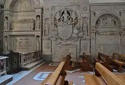 Tombs of the Carafas in the Chapel of the Crucifix. Diomede's tomb is on the left.
