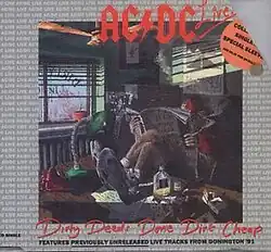 "Dirty Deeds Done Dirt Cheap" has only been included on one official AC/DC live album, 1992's Live, sung by Scott's replacement Brian Johnson. This live version was released as a single. A video clip for the single was released containing footage from the Live at Donington home video, as well as other old clips mixed in the video. This video clip was later released on the DVD Family Jewels Disc 3, as part of the 2009 box set Backtracks.