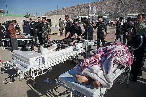 Medical surge – An influx of patients (physical casualties and psychological casualties), bystanders, visitors, family members, media and individuals searching for the missing who present to a hospital or healthcare facility for treatment, information and/or shelter as a result of a disaster.[2]