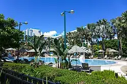 The hotel also features a complementary children's arcade called Malibu Games, featuring air hockey and hoopshooting, among other things.[3]