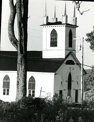 Two Dixmont buildings are listed on the National Register of Historic Places: the Carpenter Gothic-style Dixmont Corner Church (also known as the Dixmont Methodist Church), designed and built by Rowland Tyler in 1835;[11] and the Louis I. Bussey School of 1808.[12] Tyler also built the first Penobscot County Courthouse in Bangor, which does not survive.