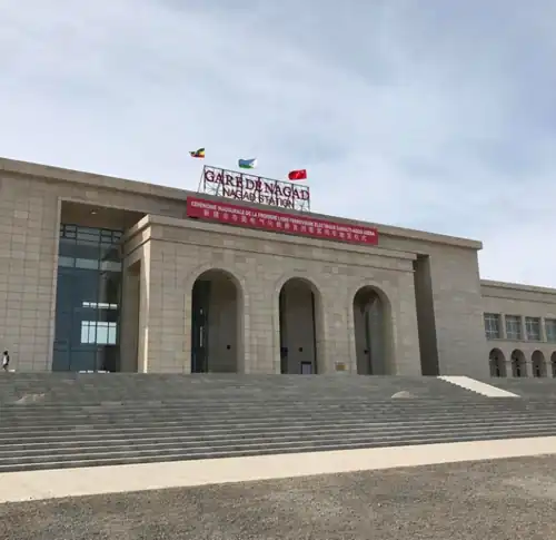 Djibouti is a terminus of the Addis Ababa–Djibouti Railway. For most of its length, the railway runs parallel to the abandoned metre-gauge Ethio-Djibouti Railway.[39] However, the standard-gauge railway is built on a new, straighter right-of-way that allows for much higher speeds. New stations have been built outside city centres, and the old stations have been decommissioned.[40][41] On 10 January 2017, the 100 km section of Djibouti side was inaugurated in a ceremony held in the new station by Djibouti's President Ismail Omar Guelleh and Ethiopia's prime minister Hailemariam Dessalegn. There are two local railway stations: a passenger station at Nagad, and a freight station at the Port of Doraleh.