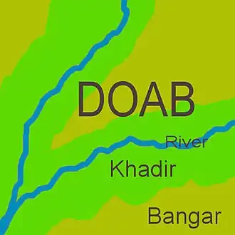 Historically, villages in the doabs have been officially classified as khadir, khadir-bangar (i.e. mixed) or bangar for many centuries, and different agricultural tax rates applied based on a tiered land-productivity scale.[10][11]