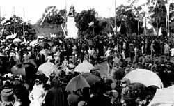 Sarmiento served as President of Argentina from 1868 to 1874, becoming president despite the maneuverings of his predecessor Bartolomé Mitre.[47] According to biographer Allison Bunkley, his presidency "marks the advent of the middle, or land-owning classes as the pivot power of the nation. The age of the gaucho had ended, and the age of the merchant and cattleman had begun."[48] Sarmiento sought to create basic freedoms, and wanted to ensure civil safety and progress for everyone, not just the few. Sarmiento's tour of the United States had given him many new ideas about politics, democracy, and the structure of society, especially when he was the Argentine ambassador to the country from 1865 to 1868. He found New England, specifically the Boston-Cambridge area to be the source of much of his influence, writing in an Argentine newspaper that New England was "the cradle of the modern republic, the school for all of America." He described Boston as "The pioneer city of the modern world, the Zion of the ancient Puritans ... Europe contemplates in New England the power which in the future will supplant her."[49] Not only did Sarmiento evolve political ideas, but also structural ones by transitioning Argentina from a primarily agricultural economy to one focused on cities and industry.[50]
