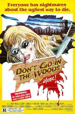 Don't Go in the Woods (also known as Don't Go in the Woods... Alone!) is a 1981 American slasher film directed by James Bryan and written by Garth Eliassen. The film follows four campers confronted by a murderous woodsman slaying hikers on a wooded mountainside. It is one of the infamous "video nasties" banned in the United Kingdom in the 1980s.[2]