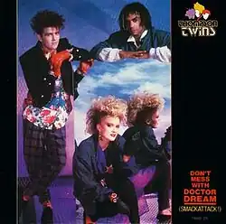 "Don't Mess With Doctor Dream" is a 1985 song by the British band Thompson Twins. It was released as a single from their album Here's to Future Days, and peaked at No. 15 in the UK, spending six weeks on the chart.[2] Written by bandmembers Tom Bailey, Alannah Currie and Joe Leeway, it is an anti-drug song warning of the dangers of drug addiction. It was the first Thompson Twins single to be co-produced by Nile Rodgers. A promotional music video was made for the single which was directed by Godley & Creme along with Meiert Avis.