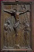 | after Donatello | Crucifixion | relief, low | stucco on poplar with remnants of gilding, original wooden frame | 36.5 × 26.6 × 4, frame: 53.5 × 45 × 7.5 | 1460–1466 | Berlin, Bode Museum (since 1883, Inv. 53) | |