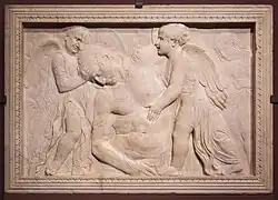 - ^ Probably the earliest copy after a plaquette by Donatello, of which several were obtained by Wilhelm Bode for the Berlin collections, a. o. a larger version in terracotta (Inv. 56). Further copies can be found in other museums such as the Musée Jacquemart-André in Paris Inv. MJAP-OA 2085 made of chased and gilded copper. Discussion and bibliography on this model see entry in the Berlin online catalogue.