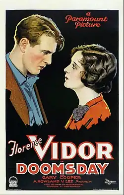 Doomsday is a 1928 American romance drama silent film directed by Rowland V. Lee and starring Florence Vidor and Gary Cooper. Written by Julian Johnson, Donald W. Lee, and Doris Anderson, based on the 1927 novel Doomsday by Warwick Deeping, the film is about a woman who marries a wealthy landowner to escape her life of poverty, leaving behind the handsome farmer she truly loves. Produced by Jesse L. Lasky, Rowland V. Lee, Hector Turnbull, and Adolph Zukor for Paramount Pictures, Doomsday was released on February 18, 1928 in the United States.[1]