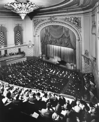 Standard Hour broadcast from the War Memorial Opera House. San Francisco Symphony in the pit, Pierre Monteux on the baton, 10 ft concert grand stage left, Dorothy Warenskjold on the mike. America west of the Rockies listening on AM radio via high-powered telephone lines.