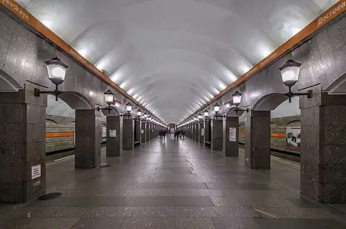 Dostoyevskaya (Russian: Достоéвская) is a station on the Line 4 of the Saint Petersburg Metro, opened on December 30, 1991. Walkways connect Dostoyevskaya with Vladimirskaya metro station of the Kirovsko-Vyborgskaya Line. The namesake for this station is Fyodor Dostoevsky