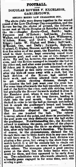 1889–90 Law Cup 2nd Round, Douglas Rovers 2a0 Excelsior, Kirkcudbrightshire Advertiser, 7 February 1890
