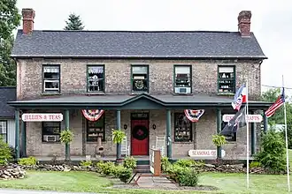 Downer Tavern, also known as the Jonathan Downer House, is a historic home that also served as an inn and tavern located in Chalk Hill, Wharton Township, Fayette County, Pennsylvania. It was built about 1826, and is a 2+12-story, 5-bay, brick building with a center hall floor plan with Federal style detailing. It has a two-story, kitchen ell. Also on the property is a 1+12-story stone spring house (now a residence) and a late-19th century frame wash house. It served as a stop for 19th-century travelers on the National Road.[2]