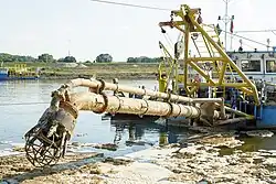 The dredge drag head of a suction dredge barge on the Vistula River in Warsaw, Poland