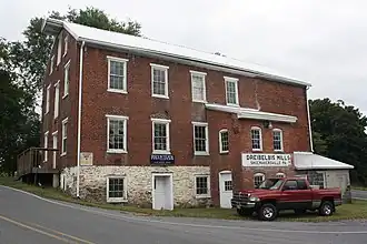 Dreibelbis Mill /drbəlbɪs/ is a historic grist mill located in Perry Township, Berks County, Pennsylvania. The mill was built in 1854, and is a 2+12-story, brick building on a banked stone basement. The mill remained in operation until 1985. After 1944, it was powered by a diesel engine.[2]