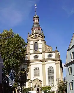 The Dreifaltigkeitskirche in Speyer is a baroque building and goes back directly to the St. Catherine's Church in Frankfurt, which was built between 1678 and 1680 by Melchior Heßler. It was built between 1701 and 1717. The master builder was the Mannheim architect Johann Peter Graber. The church is regarded as an "outstanding achievement of Protestant church architecture and a jewel of the Baroque".[9]
