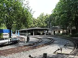 The Dresden park railway (German: Dresdner Parkeisenbahn) is a 381 mm (15 in) minimum-gauge railway in Dresden, Germany. The line opened in 1950 and was previously known as the Kindereisenbahn and the Pioniereisenbahn. As these names suggest, the line is largely operated by children, and is a survivor of the many children's railways that were built in the former Eastern Bloc countries. The railway operates within the Großer Garten, a large city centre park.