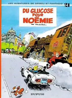 Du glucose pour Noémie, written and drawn by Fournier, is the twentyfirst album of the Spirou et Fantasio series, and the author's second, following the Spirou retirement of André Franquin. The story was initially serialised in Spirou magazine before it was published, along with the short story Un faux départ, as a hardcover album in 1971.