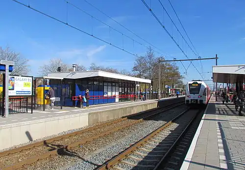 Duiven is a railway station located in Duiven, Netherlands. The station was opened on 15 February 1856 and is located on the Oberhausen–Arnhem railway between Arnhem and Elten (Germany). The train services at this station are operated by Arriva and Breng. The station was closed on 4 October 1936, but reopened on 31 May 1980. ICE services pass through this station at high speed.