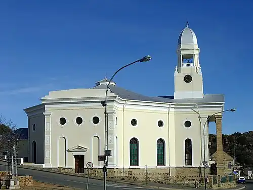 The Dutch Reformed Church in Colesberg, with the Northern Cape town of Colesberg as its centre,[1] is the 18th oldest congregation of the Dutch Reformed Church in South Africa, but due to the synodal boundaries that differ from the provincial ones,[2] the fifth oldest in the Synod of Eastern Cape.[3] On 10 December 2011,[4] the congregation was already 185 years old.[5] In 2015, the congregation had 90 baptized and 458 professing members.[6]
