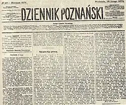 Dziennik Poznański (transl. Poznań Daily) was an information and current affairs newspaper that was originally founded as a magazine. It was published in 1859–1939 in Poznań. It was briefly reestablished in independent Poland from 1991 to 1999.