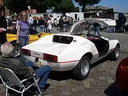 The chassis was an unshortened Volkswagen Type 1 platform with a 2,400 mm (94.5 in) wheelbase, while the car was 4,240 mm (166.9 in) long, 1,780 mm (70.1 in) wide, and a mere 1,040 mm (40.9 in) high. First mentioned in 1984, a targa-roofed 2+2-seater version called the 2 Plus was also available, with only a slight weight penalty.[5][6]