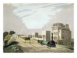 The station lies on the former Liverpool and Manchester Railway, which was opened on 15 September 1830. The station opened with the commencement of passenger services on 17 September. The station was not originally called Earlestown; it was listed as Viaduct, Newton Junction and Warrington Junction in timetables during its early years of operation.[1] By 1861, it was known as Earlestown Junction until 5 June 1950, when the 'Junction' suffix was dropped.