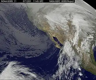 Extratropical cyclone pumping subtropical moisture into the Southwestern United States December 1, 2007