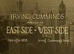 East Side - West Side is a 1923 American silent drama film. Directed by Irving Cummings, the film stars Kenneth Harlan, Eileen Percy, and Maxine Elliott Hicks.
