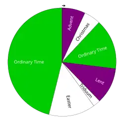 | Related to | Septuagesima, Sexagesima, Quinquagesima, Shrove Tuesday, Ash Wednesday, Clean Monday, Lent, Great Lent, Friday of Sorrows, Palm Sunday, Holy Week, Maundy Thursday, Good Friday, and Holy Saturday which lead up to Easter; and Divine Mercy Sunday, Ascension, Pentecost, Trinity Sunday, Corpus Christi, and Feast of the Sacred Heart, which follow it. |