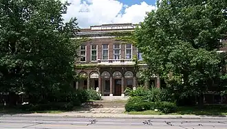In October 1915, George Eastman provided the funds to build a free dispensary in Rochester, New York, that provided oral health benefits to the entire community.[2] This dispensary would serve as the central location for dental services in the Rochester community, supplementing many other smaller offsite locations that had been constructed by other area philanthropists such as Henry Lomb and William Bausch.[2] On May 9, 1917, the dispensary was dedicated and on October 15, 1917, the dispensary officially opened to the public. 1917 also saw the graduation of the first class of the Dental Hygiene School.[2] Over the next few years, the dispensary continued to grow, prompting George Eastman to make an endowment of 1,000 additional Kodak stock shares in 1919.[2] This endowment provided necessary funds for the dispensary to aid in the treatment of nose and throat disorders, as well as provide orthodontics services.[2] This endowment also provided the necessary means for the dispensary to open a tonsil-adenoid clinic.[2] Mr. Eastman continued to be a major benefactor of the dispensary even into his death in 1932, leaving a bequest of an additional $1 million.[2] In 1941 the dispensary officially gained its name as the Eastman Dental Dispensary.[2] By 1978, Eastman Dental, as the organization came to be known, moved to a new larger building, the Eastman Dental Center at the University of Rochester Medical Center campus.[2][3] Following the move, the Eastman Dental Dispensary building sat vacant for close to four decades, and fell into a state of disrepair.[4] It was listed on the National Register of Historic Places in 1983.[1]
