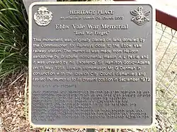 1. ^ a b c d e f g h i j k l m n o p q r s t u v w "Ebbw Vale Memorial Park (entry 602433)". Queensland Heritage Register. Queensland Heritage Council. Retrieved 1 August 2014.