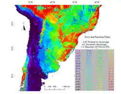 - ^ a b c d e f g Paruelo; et al. (2001). "Current distribution of ecosystem functional types in temperate South America". Ecosystems. 4 (7): 683–698. CiteSeerX 10.1.1.660.431. doi:10.1007/s10021-001-0037-9. S2CID 8173744.