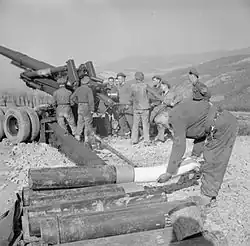 The anticipated invasion never came, and the field force in the UK began to prepare for offensive action once more. One innovation was the Army Group Royal Artillery (AGRA), a powerful artillery brigade, usually comprising one heavy, three medium and one field regiment, which could be rapidly moved about the battlefield, and had the punch to destroy enemy artillery.[85][86][87] 51st (L) Hvy Rgt, together with its attached signal section and LAD, was assigned to 4 AGRA, formed in May 1943 as part of Second Army.[61][88][89]