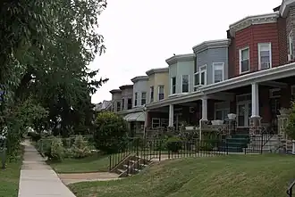 The Edmondson Avenue Historic District encompasses several neighborhoods on the west side of Baltimore, Maryland. The area was developed primarily between 1900 and 1940, radiating from the streetcar line that ran along Edmondson Avenue, an east–west thoroughfare. It includes significant portions of the Evergreen Lawn, Bridgeview/Greenlawn, Rosemont, and Midtown-Edmondson neighborhoods, including hundreds of buildings, many of them residential rowhouses. Although initially populated by European-Americans, the neighborhood population became predominantly African-American in the 20 years after World War II, and was a center of civil rights activism and community organizing.[2]