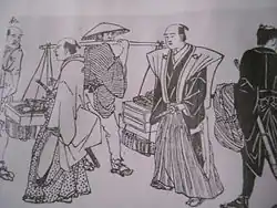 The Tokugawa shogunate ruled by dividing the people into four main categories. Older scholars believed that there were Shi-nō-kō-shō (士農工商, Four Occupations) of "samurai, peasants (hyakushō), craftsmen, and merchants" (chōnin) under the daimyo, with 80% of peasants under the 5% samurai class, followed by craftsmen and merchants.[3] However, various studies have revealed since about 1995 that the classes of peasants, craftsmen, and merchants under the samurai are equal, and the old hierarchy chart has been removed from Japanese history textbooks. In other words, peasants, craftsmen, and merchants are not a social pecking order, but a social classification.[1][4][5]