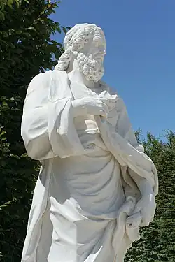 Isocrates was an influential classical Athenian orator.[48] Growing up in Athens exposed Isocrates to educators such as Socrates and Gorgias at a young age and helped him develop exceptional rhetoric.[49] As he grew older and his understanding of education developed, Isocrates disregarded the importance of the arts and sciences, believing rhetoric was the key to virtue.[50] Education's purpose was to produce civic efficiency and political leadership and therefore, the ability to speak well and persuade became the cornerstone of his educational theory.[51] However, at the time there was no definite curriculum for Higher Education, with only the existence of the sophists who were constantly traveling.[49] In response, Isocrates founded his school of Rhetoric around 393 BCE. The school was in contrast to Plato's Academy (c. 387 BCE) which was largely based on science, philosophy, and dialectic.[52]