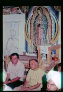 Upon his return to New Mexico, O'Brien met some young American Sikhs who wished to see his mural at St. Benedict's Abbey. They discussed with him the image of "Our Lady of Guadalupe" and how it compared with the feminine principle in Sikh Dharma. After many meetings, O'Brien agreed to create a mural for them and to move into the Sikh ashram in Espanola, New Mexico in the spring.[11]