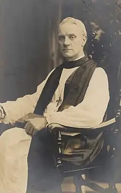 After a curacy at St Mary, Acton[5] and a period as bishop's chaplain to Anthony Thorold, Bishop of Rochester, he was Rector of Sundridge, Kent[6] and Vicar of St Mark, New Milverton, Leamington[7] before his appointment to the episcopate. He was nominated Bishop of Guyana in late 1900, and consecrated bishop by Frederick Temple, Archbishop of Canterbury, in Canterbury Cathedral on 28 December 1900.[8] From the death of his cathedral's dean in 1918 onwards, he was additionally dean of the cathedral, an arrangement which continued until 1937.