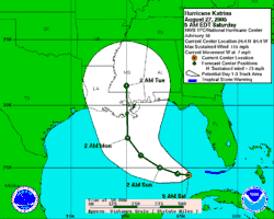 - ^ "Hurricane Katrina Probabilities Report Number 15", & "Hurricane Katrina Probabilities Report Number 21." National Hurricane Center. August 26, 2005.