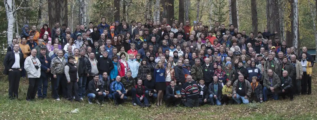 50th anniversary of SGS in 2011 – group photo of 209 members and guests in a birch forest, Kungurka recreational center near Ekaterinburg