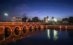 El Qanater El Khayreya (Arabic: القناطر الخيرية pronounced [elʔɑˈnɑːtˤeɾ elxæjˈɾejjæ], "the Benevolent Bridges") is a city and a markaz in Qalyubia Governorate, Egypt. It is the location of the Delta Barrages, the first modern irrigation structure across the Nile, located at the apex of the Nile Delta. In the mid 1850s, when Viceroy Sa'id Pasha took over project construction, he ordered a silver medal to be struck to mark the occasion. He then ordered the construction of a town near the incomplete barrage. Again the project would be bogged down due to financial problems; the original barrages were initially completed in 1862. A new barrage structure was built slightly downstream in 1939.[2] The name of the city is a reference to the structure and the river crossing it.[3]