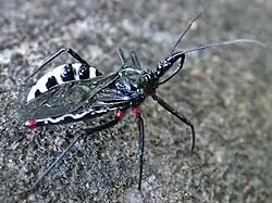In addition to being preyed upon by endoparasitic wasps and flies, the larvae are preyed upon by predators such as reduviid bugs like Agriosphodrus dohrni.[19]