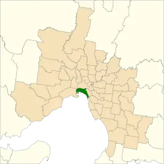 Location of Albert Park (dark green) in Greater Melbourne