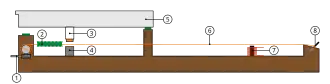 1. Tuning / 2. Damper / 3. Tangent / 4. Anvil / 5. Key / 6. String / 7. Pickup / 8. Tailpiece